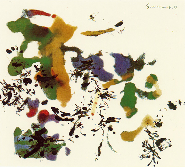Thomas Grochowiak Giocoso, improvisiert als Hommage à Mozart 1959, synthetische und chinesische Tusche, 35 x 39 cm © Thomas Grochowiak
