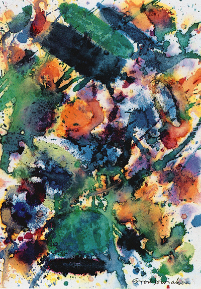 Thomas Grochowiak Etüde nach Mozart: Allegro vivace aus: Sinfonie C-Dur (Jupitersinfonie), KV 551 1990, farbige Tusche auf Papier, 30 x 21 cm © Thomas Grochowiak