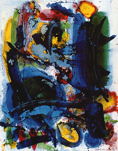 Thomas GrochowiakSereno, nach Milhaud: La Création du Monde, (2. Fassung) 1990, farbige Tusche auf Papier, 65 x 50 cm © Thomas Grochowiak