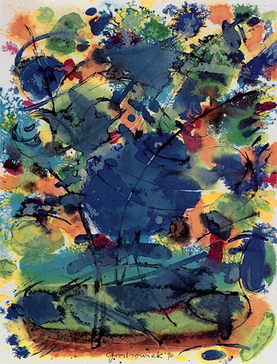 Thomas Grochowiak Nach Mozart: Allegro aus: Klaviersonate C-Dur, KV 545 1990, farbige Tusche auf Papier, 40 x 30 cm © Thomas Grochowiak