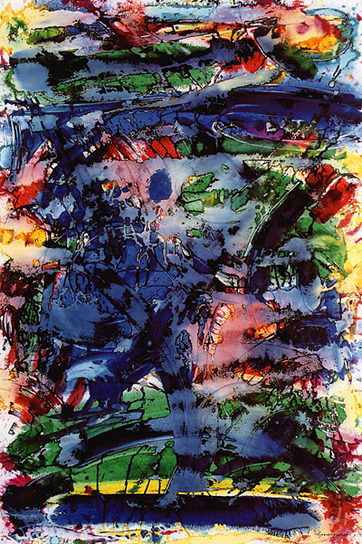 Thomas Grochowiak Nach Mozart: Allegro assai aus: Sinfonie B-Dur, KV 319, (2. Fassung) 1991, farbige Tusche auf Fabriano, 150 x 100 cm © Thomas Grochowiak
