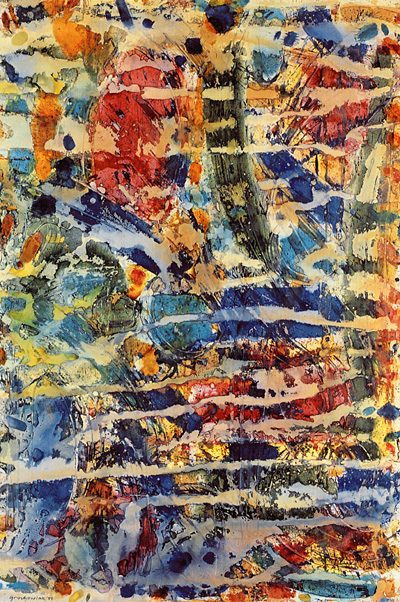 Thomas Grochowiak Nach Mozart: Klaviersonate B-Dur, KV 333 1991, farbige Tusche auf Fabriano, 150 x 100 cm © Thomas Grochowiak