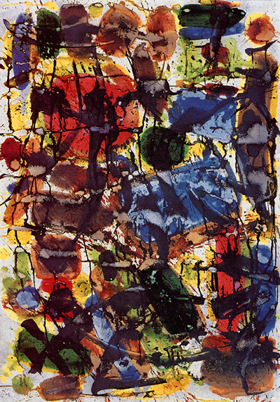 Thomas Grochowiak Nach Mozart: Sonata Nocturna D-Dur, KV 239, (2. Fassung) 1991, farbige Tusche auf Papier, 100 x 70 cm © Thomas Grochowiak