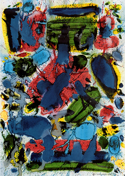 Thomas Grochowiak Nach Mozart: Konzert für Klavier und Orchester c-Moll, KV 491, 3. Satz, (2. Fassung) 1993, farbige Tusche auf Bütten, 100,5 x 70 cm © Thomas Grochowiak