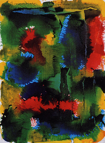 Thomas Grochowiak Etüde zu Kuhlau: Flötenquintett, op. 51 Allegro 2000, farbige Tusche auf Bütten, 37,5 x 27,3 cm © Thomas Grochowiak