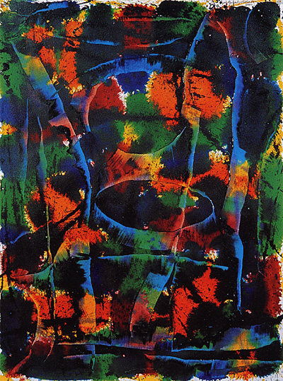 Thomas GrochowiakInspiriert von Kuhlau: Flötenquintett, op. 51, Nr. 1, D-Dur – Menuetto – Allegro con spirito 2000, farbige Tusche auf Bütten, 70 x 50 cm © Thomas Grochowiak