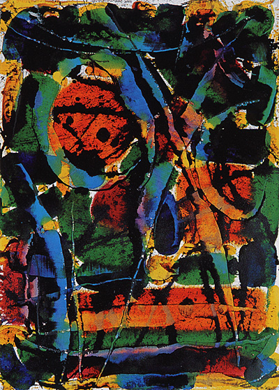 Thomas Grochowiak Inspiriert von Kuhlau: Flötenquintett, op. 51, Nr. 1, D-Dur – Allegro 2000, farbige Tusche auf Bütten, 70 x 50 cm © Thomas Grochowiak