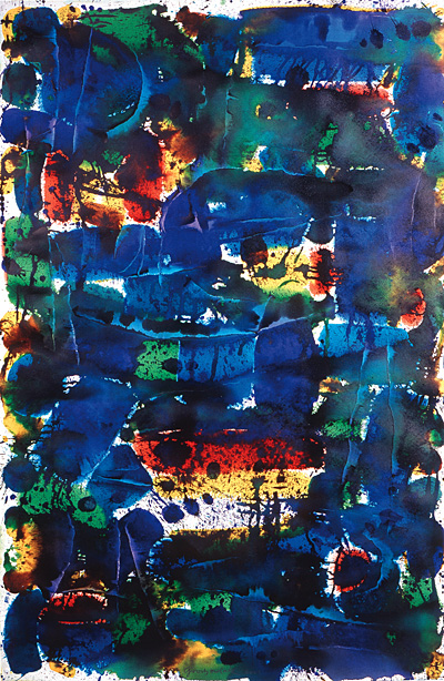 Thomas Grochowiak Während Kuhlaus Quartett für 4 Flöten, op. 103, zu hören war 2001, farbige Tusche auf Karton, 150 x 100 cm © Thomas Grochowiak