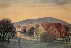 Dorf gegen Abend 1945, Öl auf Hartfaser,