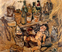 Stilleben mit Puppe (Die Ausgebooteten) 1946, Öl auf Hartfaser,