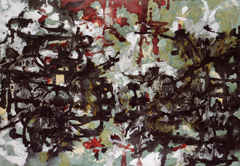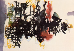 »Seit 1956 zielen meine Malaktionen immer wieder dahin, das Schwere zum Schweben zu bringen – Aktivität und Spontaneität, die sich in automatischer Pinselschrift durch Zeichen und vegetative Strich-Bündelungen äußern, mit in sich ruhenden Formen zu spannungsgeladenem Zusammenklang zu führen.«