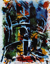 Allegro giocoso 1993, farbige Tusche auf Bütten,
